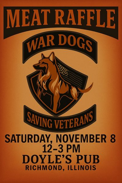Get ready for a sizzling good time! Come join us for your chance to win amazing meat prizes and raffle baskets — all while helping us raise funds to provide a service dog for a veteran or first responder in need.